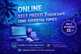 This self-paced, online course provides essential knowledge for navigating the financial industry. Participants will explore critical topics, including Federal Laws, Ethics, and Non-Traditional Lending practices. These areas are designed to ensure compliance, protect consumers from harmful industry practices, and uphold professional standards. By mastering these frameworks, MLOs gain the knowledge and tools needed to ensure compliance, build trust with clients, and navigate the complexities of a highly regulated industry with confidence and integrity.